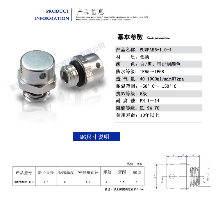 PAM6*0.8-4鋁合金防水透氣閥又名螺紋型呼吸器,本產品膜材全部采用美國進口材料,外殼鋁合金材料加工成型,膜料與外殼通過特殊工藝結合在一起,具有性能穩定,安裝簡單,使用時間長,防水透氣性能高等特征。