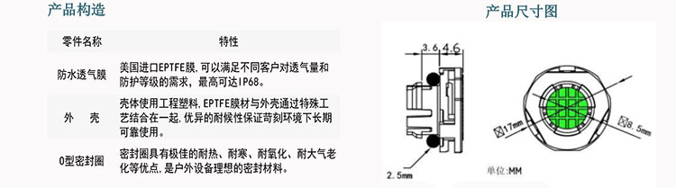 PUWKK8.5-3.6水透氣閥產品膜材全部采用美國進口材料,塑膠外殼材料加工成型,膜片與外殼通過特殊工藝結合在一起,具有性能穩定,安裝簡單,使用時間長,防水透氣性能高等特征。