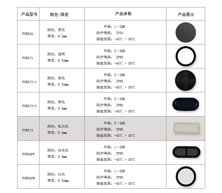 PUW573防水透氣聲膜相關(guān)產(chǎn)品推薦