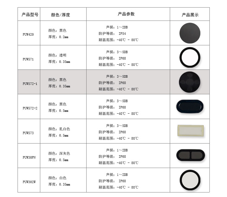 此產品特性為防塵防水透聲,用于各類防水手機,防水相機及防水電子產品上,即防塵防水同時也不影響其音質。